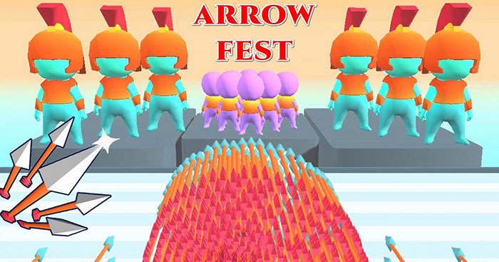 Trong game Arrow Fest, bạn có thể kiểm soát hướng của các mũi tên đang bay, nhân bản chúng để tiêu diệt kẻ thù hiệu quả. Arrow Fest là game bắn tên tiêu diệt kẻ thù vui nhộn Game Arrow Festcó cách chơi gần giống với game Weapon Clonervà Crowd Fight 3 D. Nhiệm vụ của bạn là bắn tên xuyên qua một khoảng cách xa và tiêu diệt tên trùm đứng ở cuối đường. Tuy nhiên, điều đặc biệt là bạn có thể điều hướng mũi tên bay. Trên đường, bạn sẽ thấy rất nhiều cánh cổng khác nhau. Những cánh cổng phép nhân hoặc phép cộ...