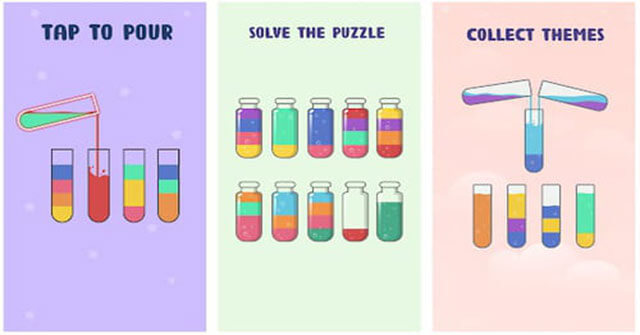 Water Sort Puzzlelà một game giải đốsiêu thú vị, với cơ chế chơi khá quen thuộc nếu như bạn đã từng chơi các game như Bead Sort, Sort Candy Puzzlehay Sort It 3 D, yêu cầu bạn sắp xếp các đồ vật theo màu sắc của chúng. Lần này, bạn có nhiệm vụ phân loại các loại nước đầy màu sắc. Chạm để đổ và phân loại nước màu trong game Water Sort Puzzle Game play trong Ball Sort Puzzlerất dễ dàng. Ngay sau khi bắt đầu chơi, bạn sẽ thấy một số ly có hỗn hợp nước đầy màu sắc. Các loại nước màu này không hòa lẫn vào nhau...