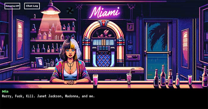 Lấy cảm hứng từ Coffee Talk, game Miami Nights - Bartending in the 80 sđưa người chơi vào nhữngcâu chuyện thú vị tại một quán bar ở Miami những năm 80. Pha chế đồ uống và trò chuyện với khách hàng trong Miami Nights - Bartending in the 80 s Miami Nights game được thiết kế theo phong cách Visual Novelthư giãn, xoay quanh câu chuyện của nhà văn thất bại chuyển nghề làm nhân viên pha chế, nơi bạn dành phần lớn thời gian để lắng nghe những câu chuyện của khách hàng. Download game Miami Nights - Bartending in...
