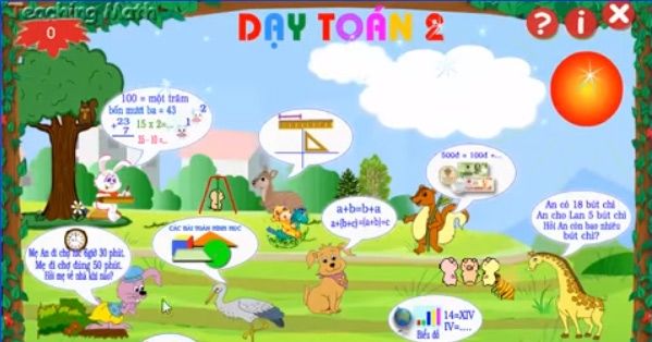 Dạy Toán 2 là phần mềm được thiết kế dành riêng cho giáo viên, hỗ trợ dạy môn Toán lớp 2. Phần mềm này mô phỏng toàn bộ 167 bài học, bám sát chương trình trong sách giáo khoa do Bộ Giáo dục và Đào tạo phát hành. Chức năng chính của phần mềm Dạy Toán 2 Dạy theo chủ đề: Trên màn hình chính sẽ xuất hiện 10 dạng toán đã mô phỏng, khi di chuột lên một biểu tượng sẽ liệt kê các chủ đề kiến thức tương ứng với dạng toán đó cho các em luyện tập. Dạy theo bài học: Chức năng này mô phỏng chi tiết toàn bộ các bài...