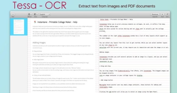 Tessa OCR cho Mac mang tới giải pháp trích xuất văn bản từ tài liệu PDF đơn giản và hiệu quả nhất bằng thuật toán nhận dạng ký tự quang học thông minh. Tessa OCR cho Mac có thiết kế thân thiện với người sử dụng và được phát hành miễn phí trên Mac Store. Tessa OCR cho Mac trích xuất văn bản từ file PDF dễ dàng Download ứng dụng trích xuất nội dung file PDF Tessa OCR cho Mac Hầu hết tài liệu PDF đều không thể chỉnh sửa. Do đó, việc sao chép văn bản lên clipboard khi xử lý file dạng này không hề dễ dàng...